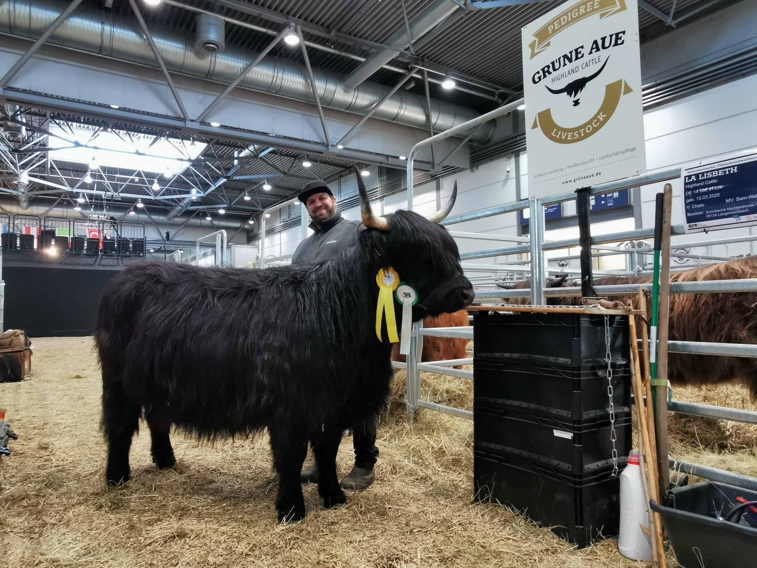 Die schottischen Hochlandrinder vom Biobetrieb Grüne Aue Highland Cattle aus Langenweißbach hatten sich im Rahmen der Landwirtschaftsausstellung agra2026  in Leipzig besonders herausgeputzt. Sie repräsentieren ihre Rasse auf dem Mitteldeutschen Fleischrinderwettbewerb und dem 8. Mitteldeutschen Highland Cattle Championat.