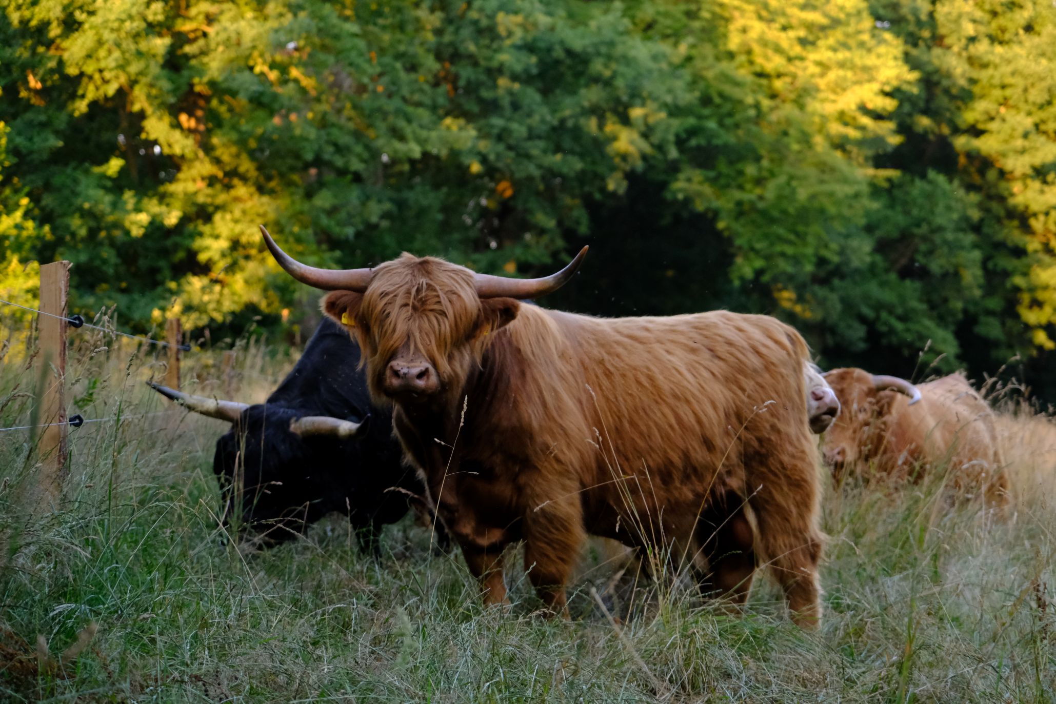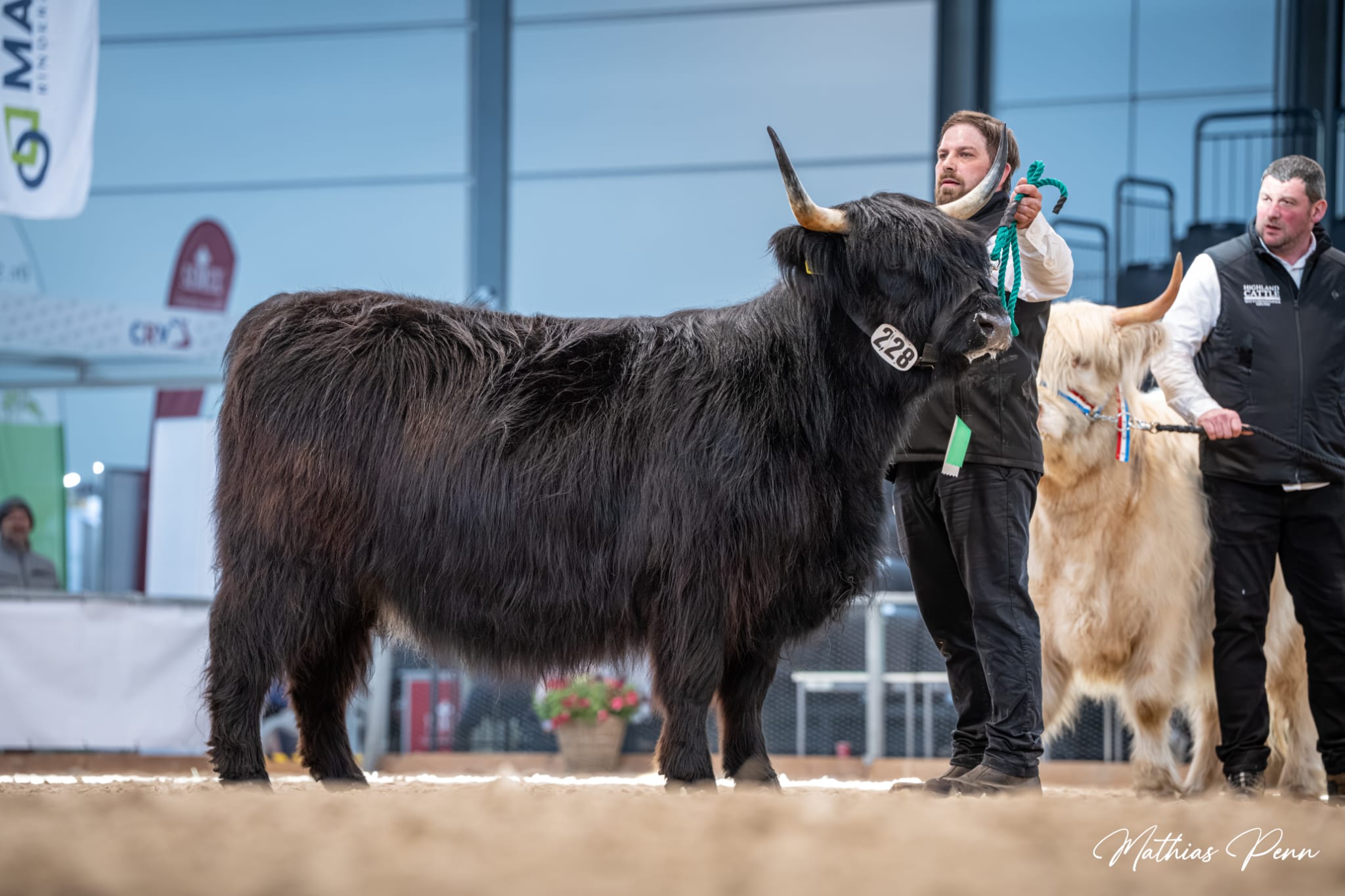 Foto (Mathias Penn): Die schottischen Hochlandrinder im Wettbewerb mit Tierführer Kai Werner